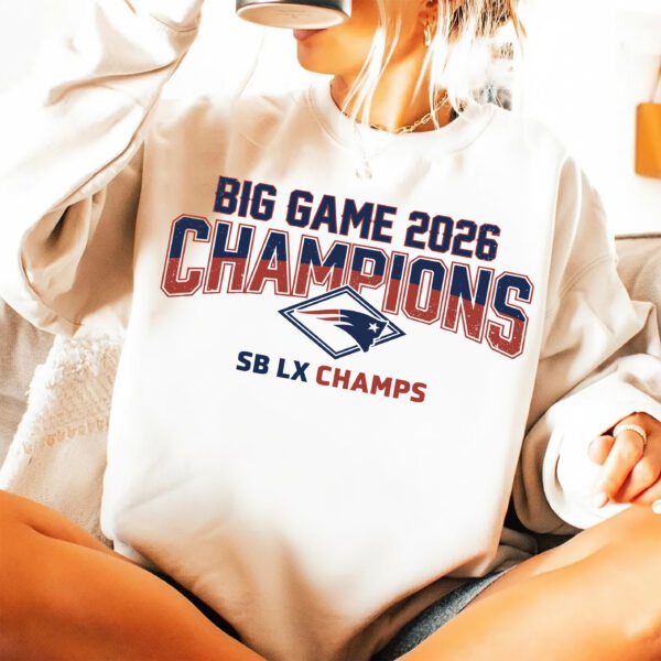 Championship Typography: Features the bold text “BIG GAME 2026 CHAMPIONS” in a traditional collegiate block font with a professional arched layout.