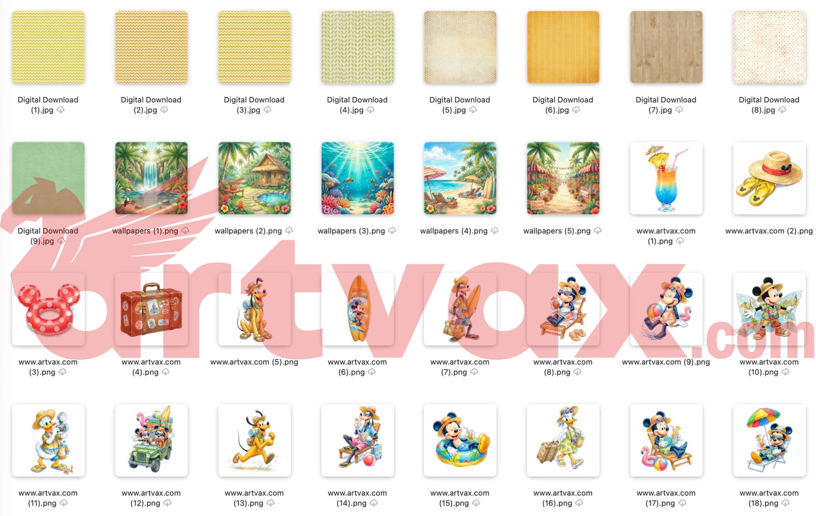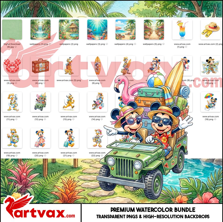 Pack your bags for a magical getaway! Bring the sunshine to your creative projects with this stunning **Disney Summer Vacation Watercolor Bundle**! ✨