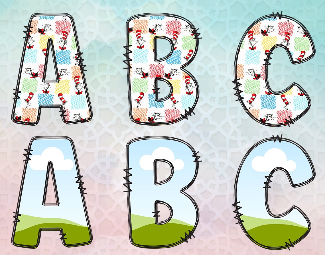 Doodle Fonts Canva Frame Bundle, Canva Frame Monogram, Editable Letters and Numbers template, Sublimation Font, Doodle Font PNG