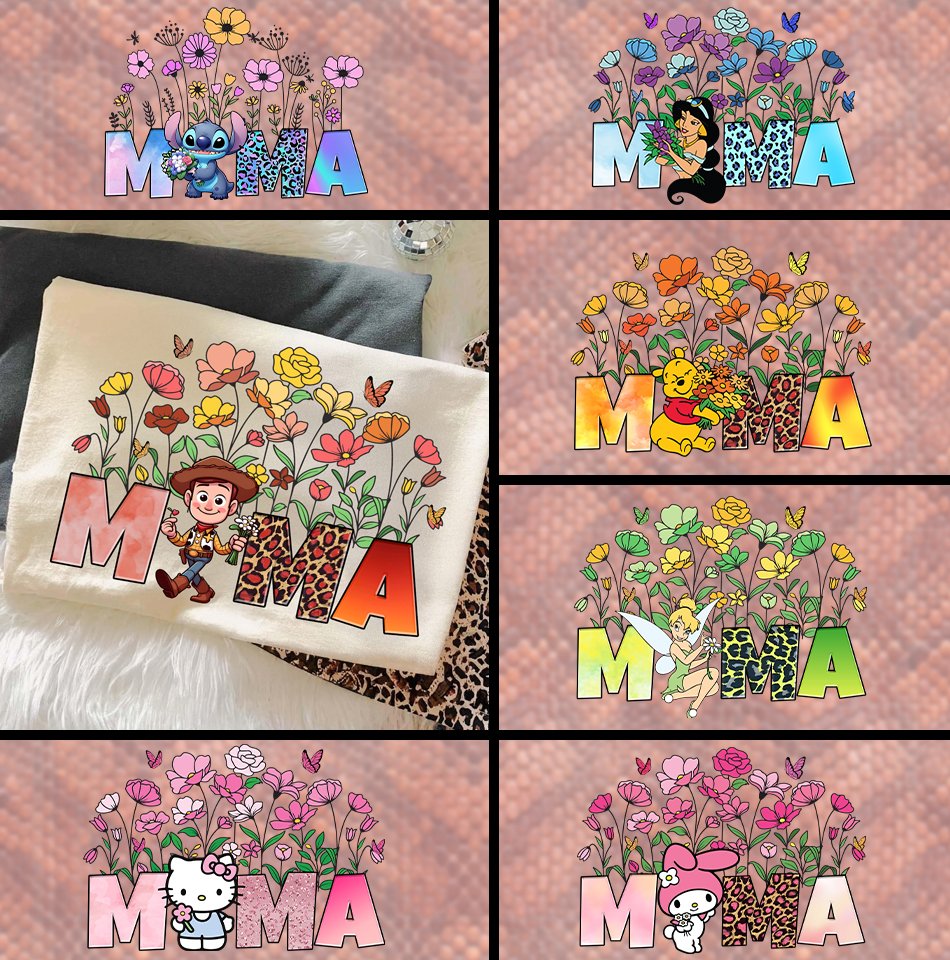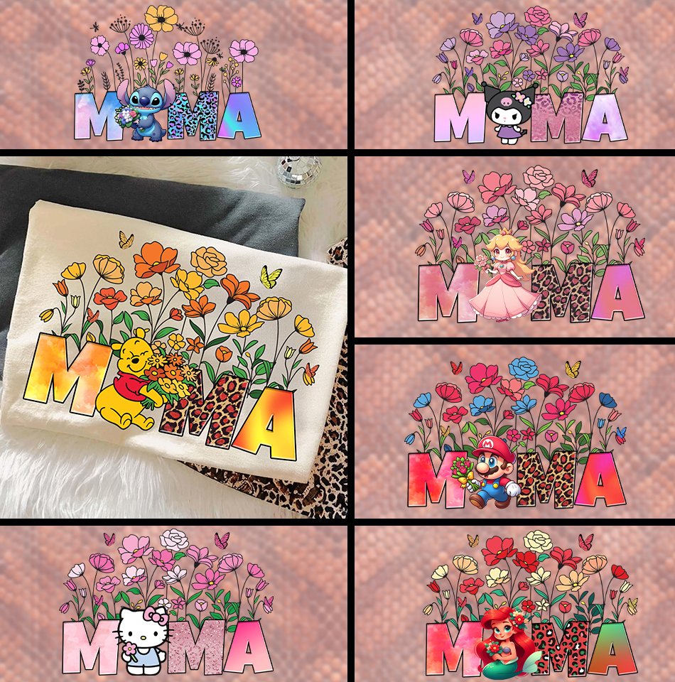 Celebrate the many styles of motherhood with this **Retro Floral “MAMA” Character Bundle**! This high-resolution collection features six stunning, unique designs that blend trendy wildflower aesthetics with beloved icons, making it the perfect choice for creating professional-quality Mother’s Day apparel, boutique-style sweatshirts, and personalized gifts. Whether she’s a fan of classic bear hugs, galactic experiments, or kingdom adventures, this bundle offers a high-fidelity design for every “Mama.” 🌸✨🧸