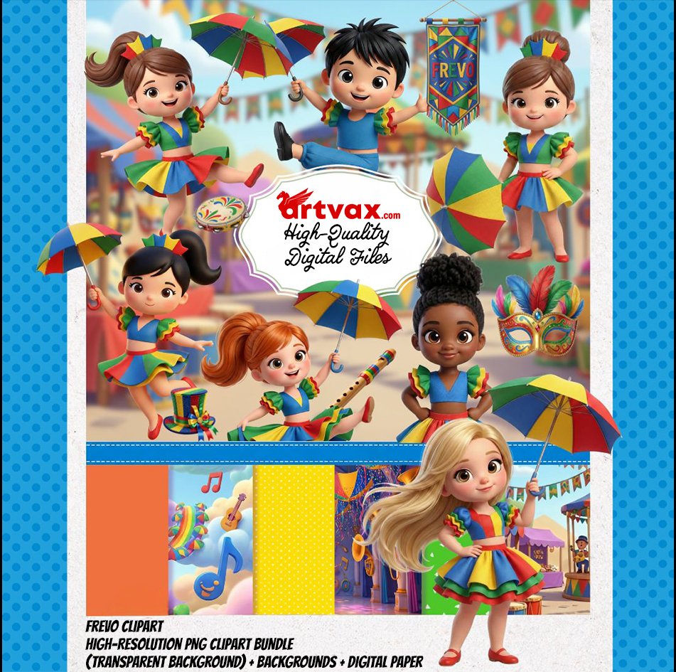 Frevo Carnival PNG Bundle | Chibi Brazilian Dance Clipart | Cute Frevo Dancers Sublimation | Pernambuco Carnival Digital Download | 300 DPI Transparent PNGs