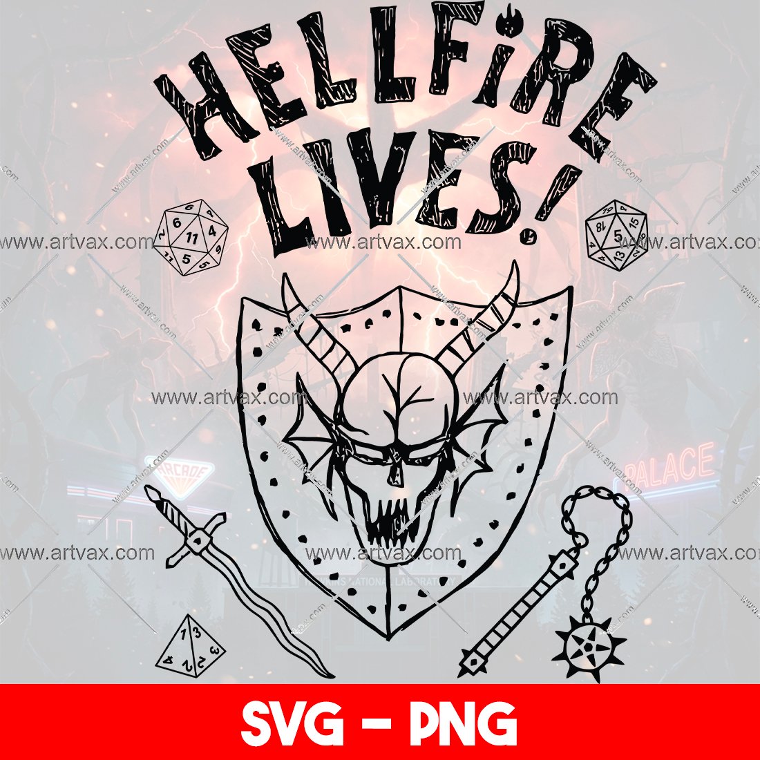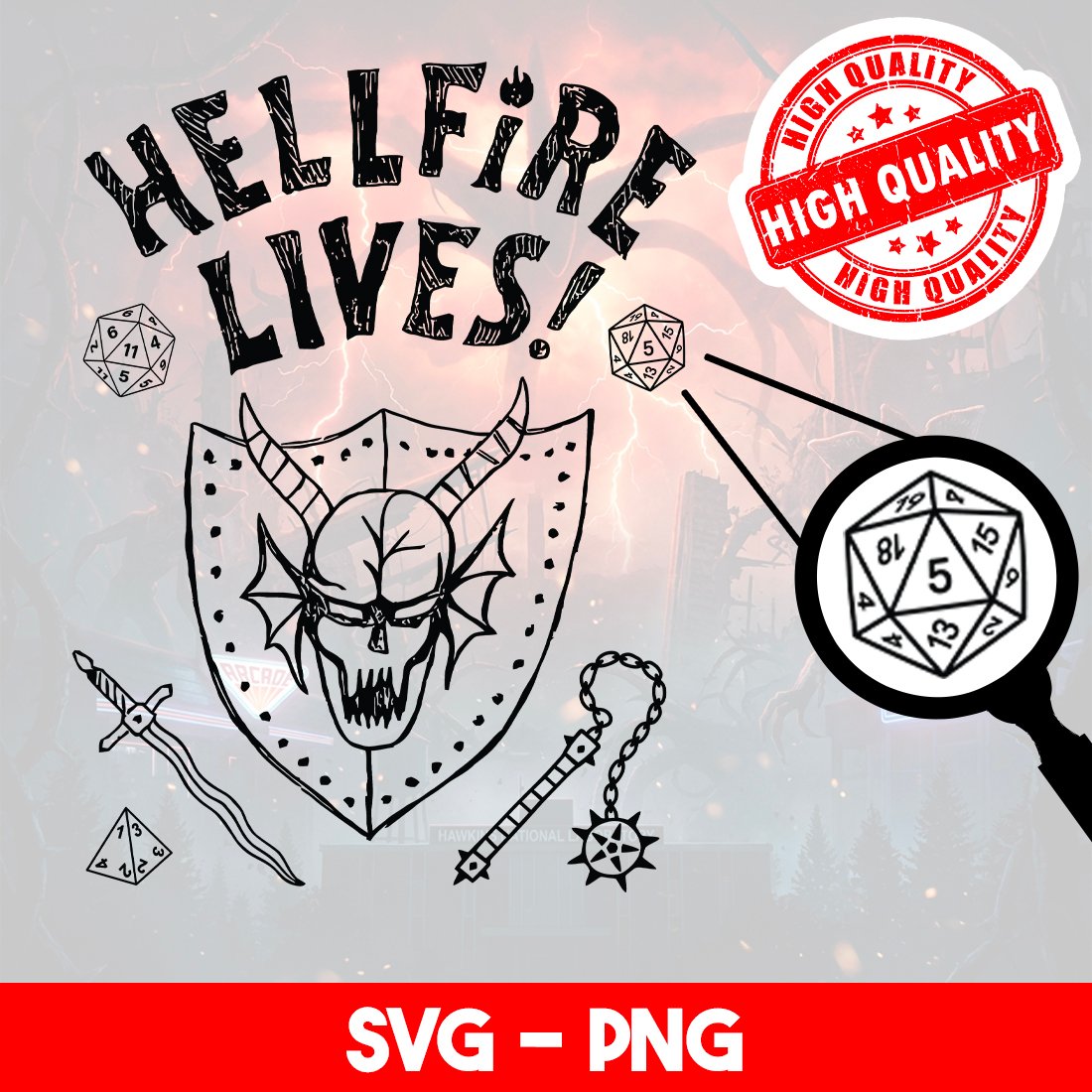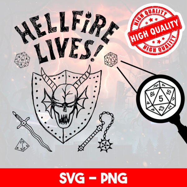 Join the club! Bring the thrill of the Hawkins High D&D sessions to your creative projects with this **Hellfire Lives! SVG & PNG Bundle**! ✨