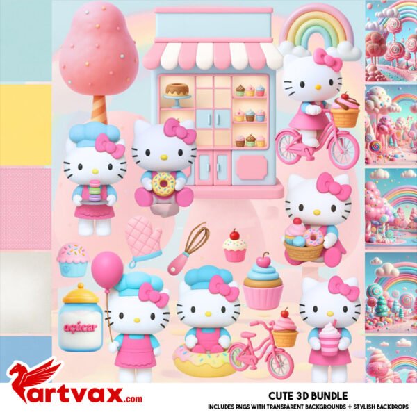 Unique Hello Kitty bakery-themed clipart files (PNG).