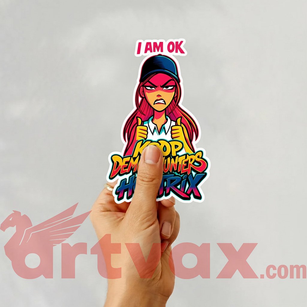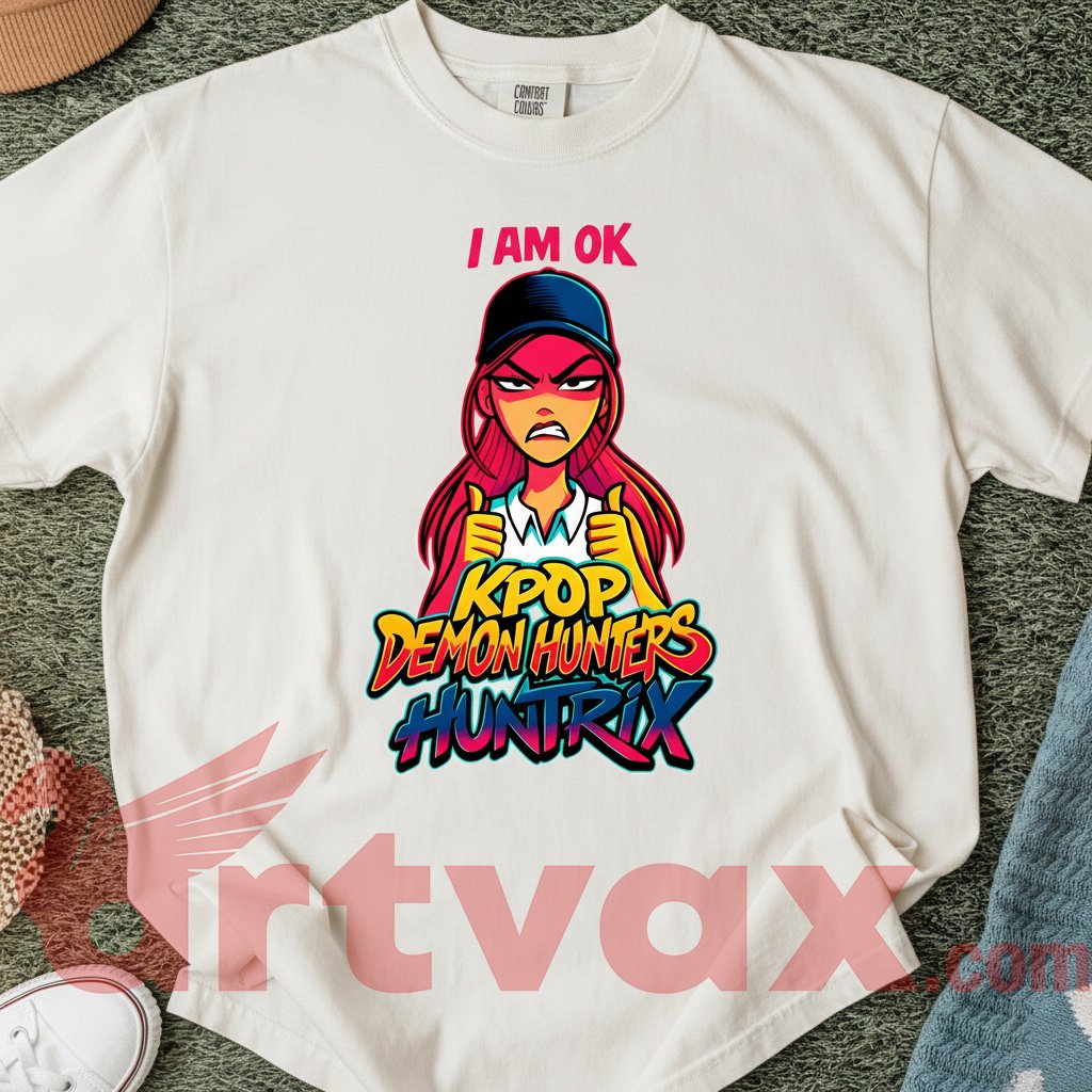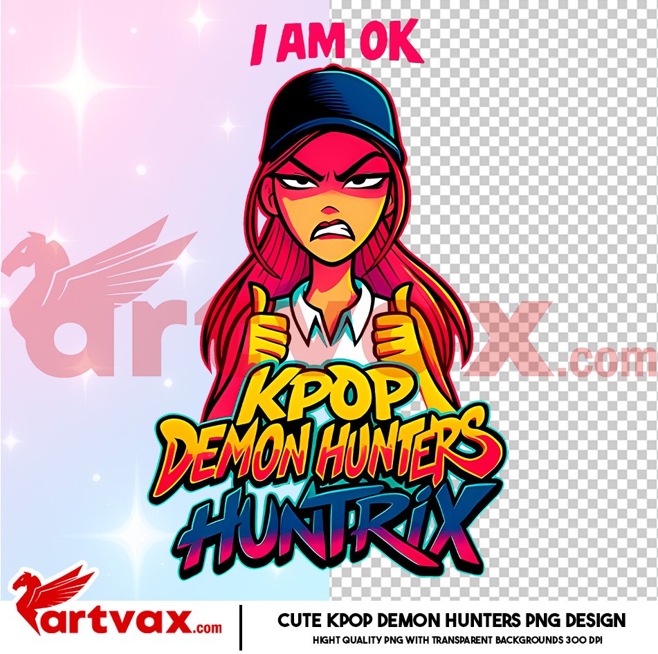 Bring humor and attitude to your designs with this KPOP Demon Hunters Huntrix “I Am OK” PNG 😎🔥 Featuring a fierce anime-inspired chibi girl giving double thumbs up with a not-so-OK face, this bold design is perfect for fans of Kpop and funny meme-style graphics.