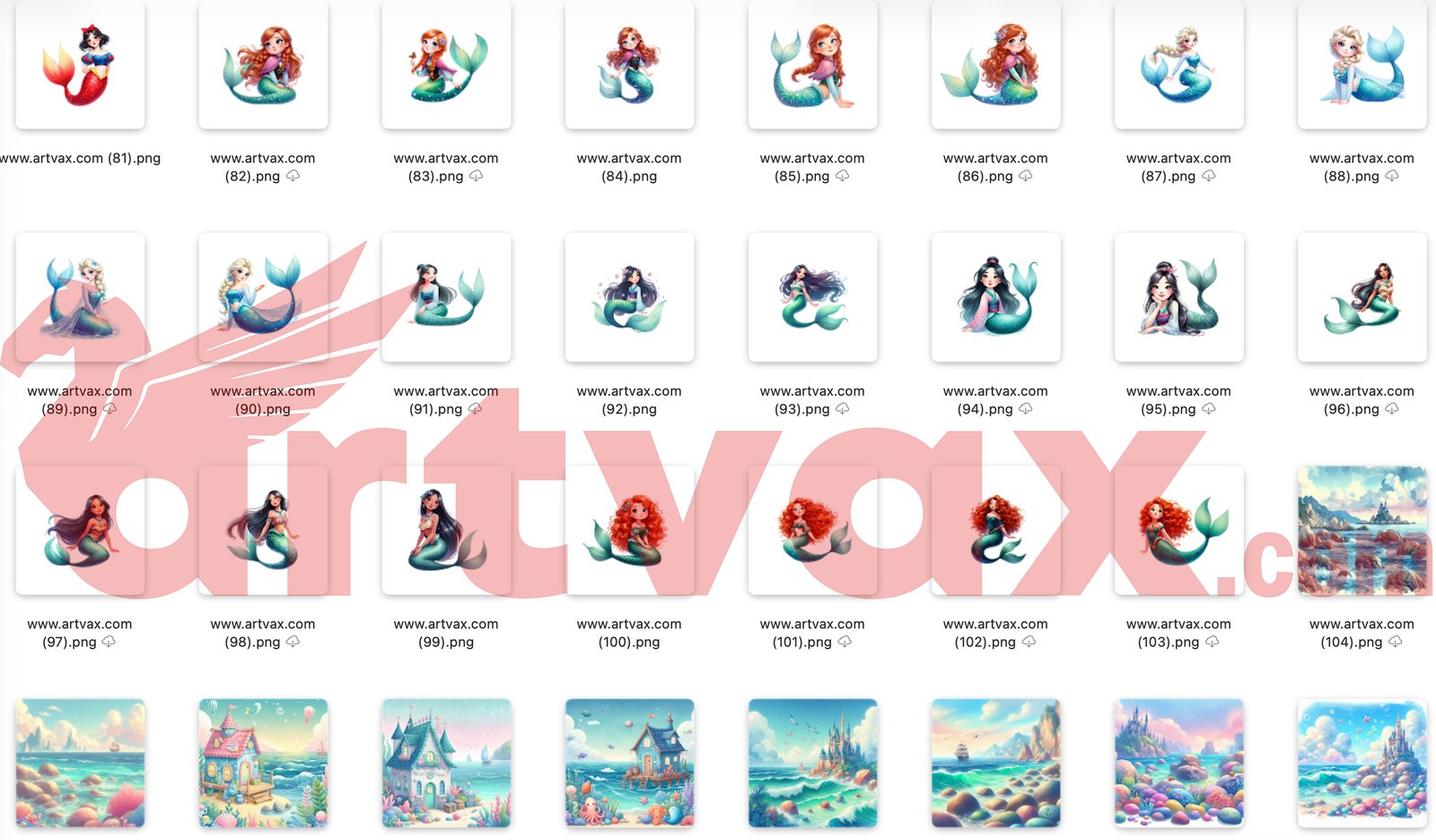Provided as **high-resolution PNGs with transparent backgrounds**, these files are optimized for a seamless experience in all your sublimation, heat transfer, and digital design projects. The bundle also includes **high-resolution backdrops** featuring a dreamy underwater castle to help you create complete, professional-looking scenes.