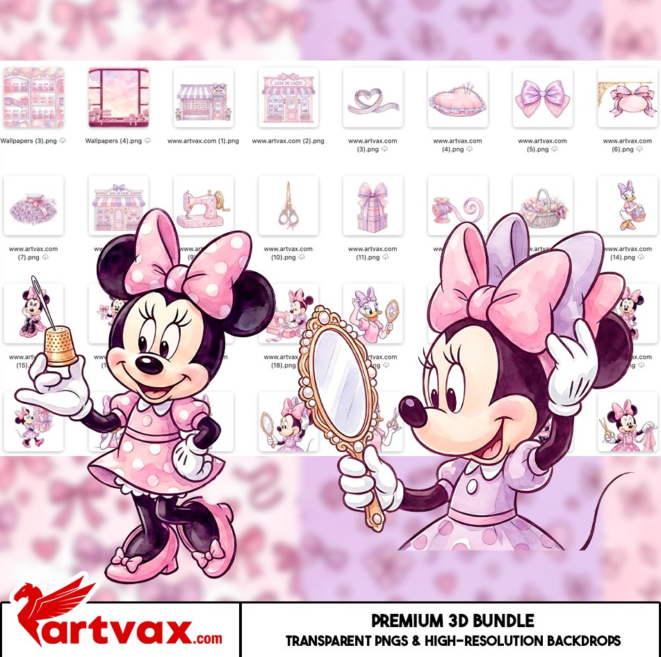 High-Quality Sublimation File: A high-resolution PNG featuring the full Minnie’s Bowtique scene.