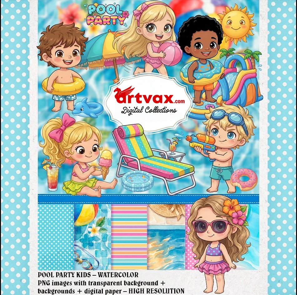 Make a splash this summer with the ultimate creative collection! This **Watercolor Pool Party Kids Bundle** is packed with adorable, high-resolution graphics perfect for birthdays, vacations, and sunny DIY projects. 🏖️🍦