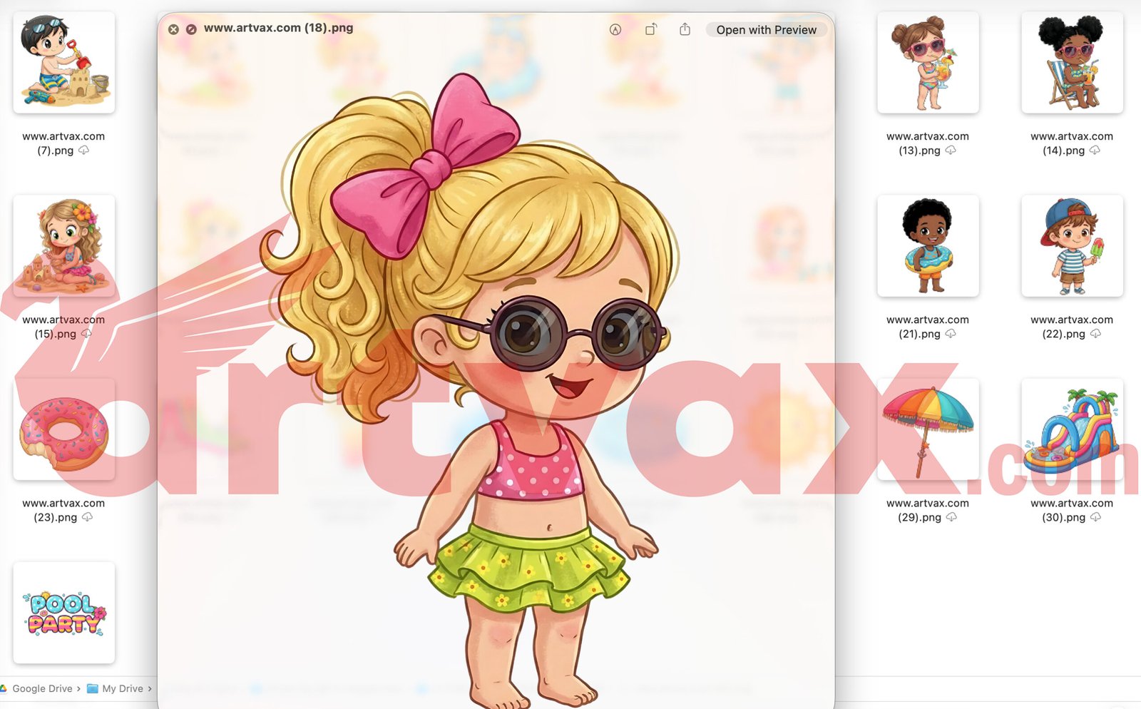 High-Quality Character Art: Multiple high-resolution PNG images featuring diverse boys and girls in swimwear.
