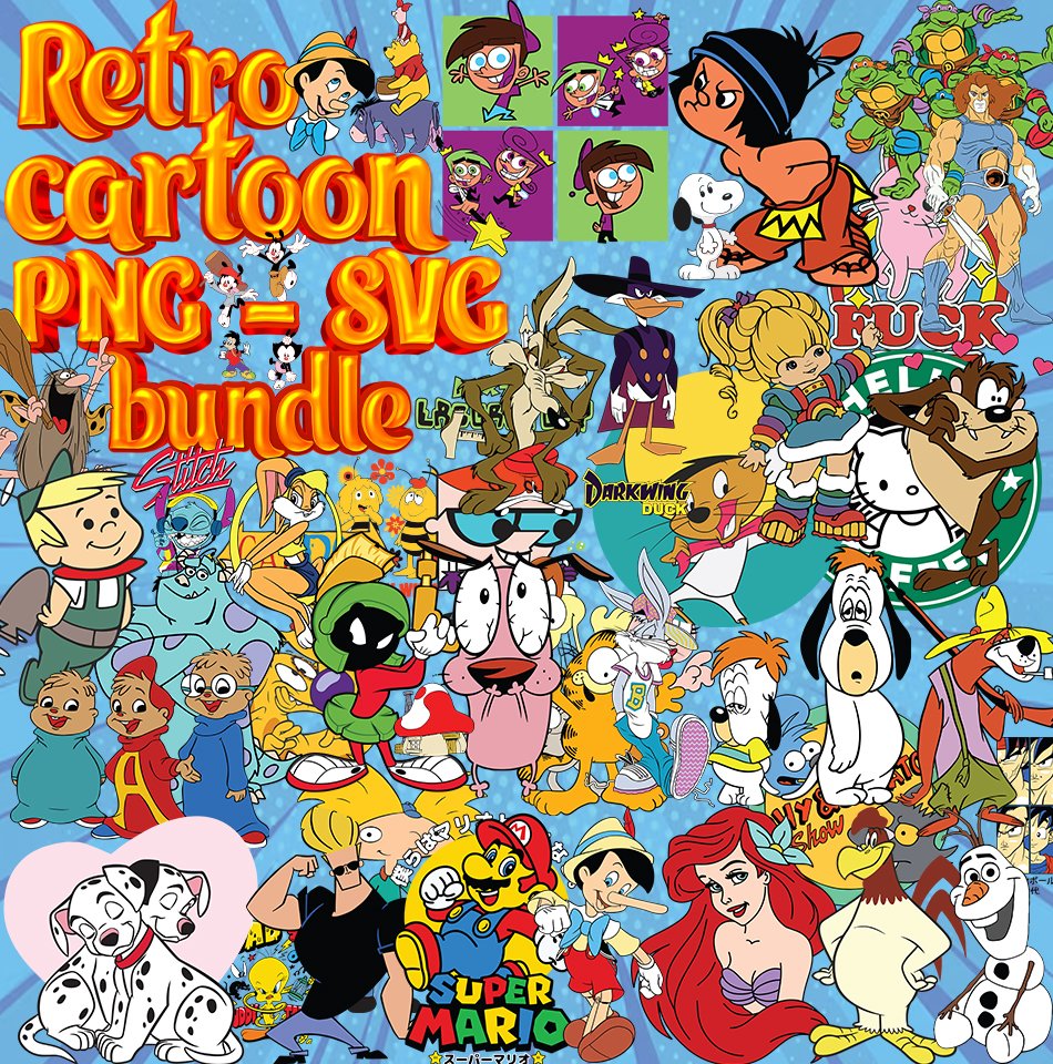 Retro Cartoon PNG SVG Bundle | 90s 80s Character Clipart Mega Pack | Nostalgic Animation Sublimation | Classic Cartoon Network & Disney Design Assets | Ultimate SVG for Cricut & Silhouette | Instant Digital Download