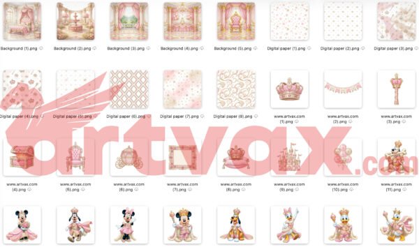 Disney Princess Minnie Mickey PNG Bundle, Pink Royal Kingdom Clipart, Magical Birthday Sublimation, Minnie Mouse Nursery Digital Paper