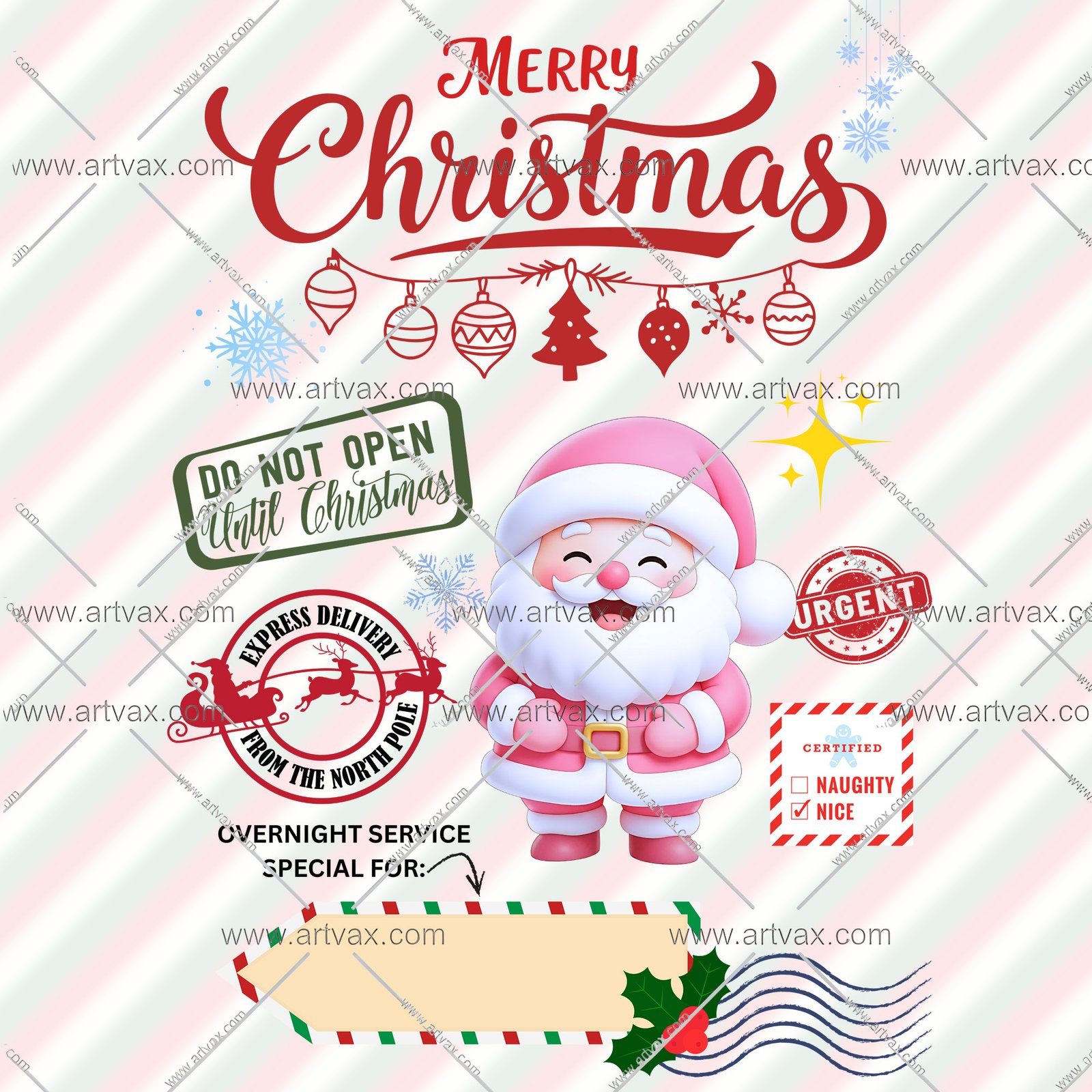 Bring the magic of Christmas morning to life with this Official North Pole Special Delivery high-quality PNG design! This instant download is perfect for personalizing Santa Sacks, large printable gift tags, or Christmas Eve boxes. The transparent background makes it ideal for printing or pressing onto any fabric or color background.