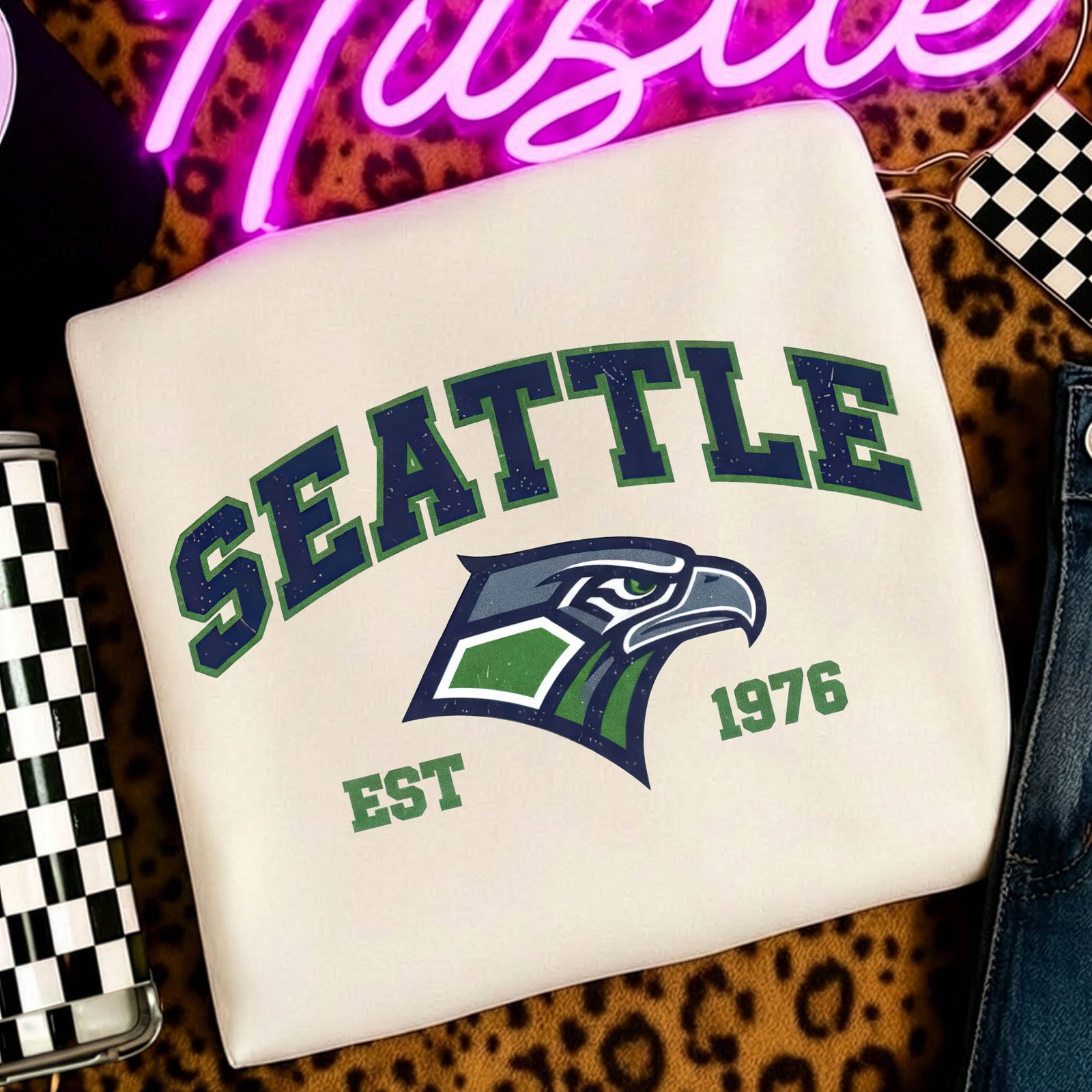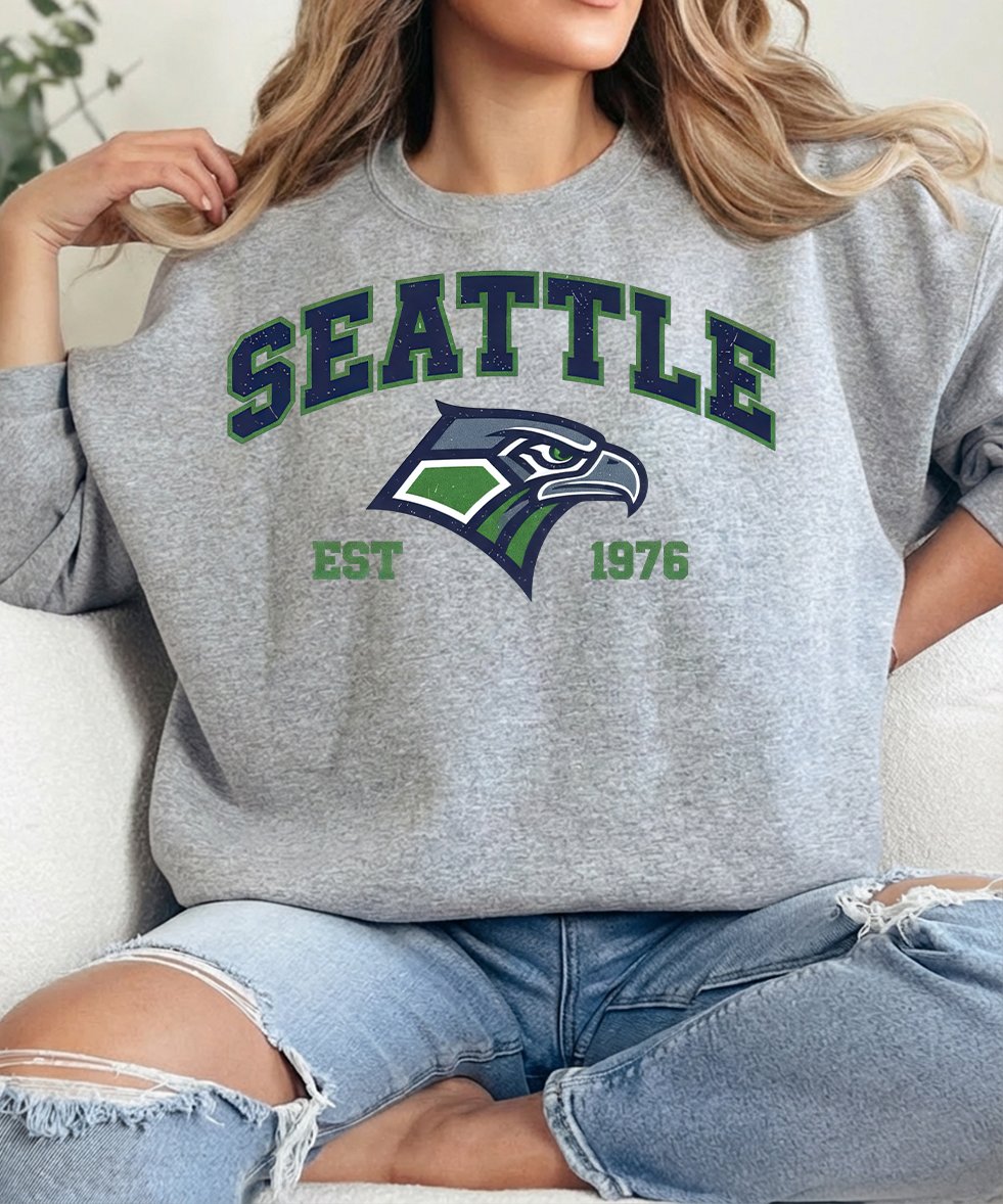 Seattle Football PNG Sublimation | Retro EST 1976 Seattle Shirt Design | Vintage Collegiate Sports Graphic | Navy & Lime Green Fan Apparel | Digital Download PNG