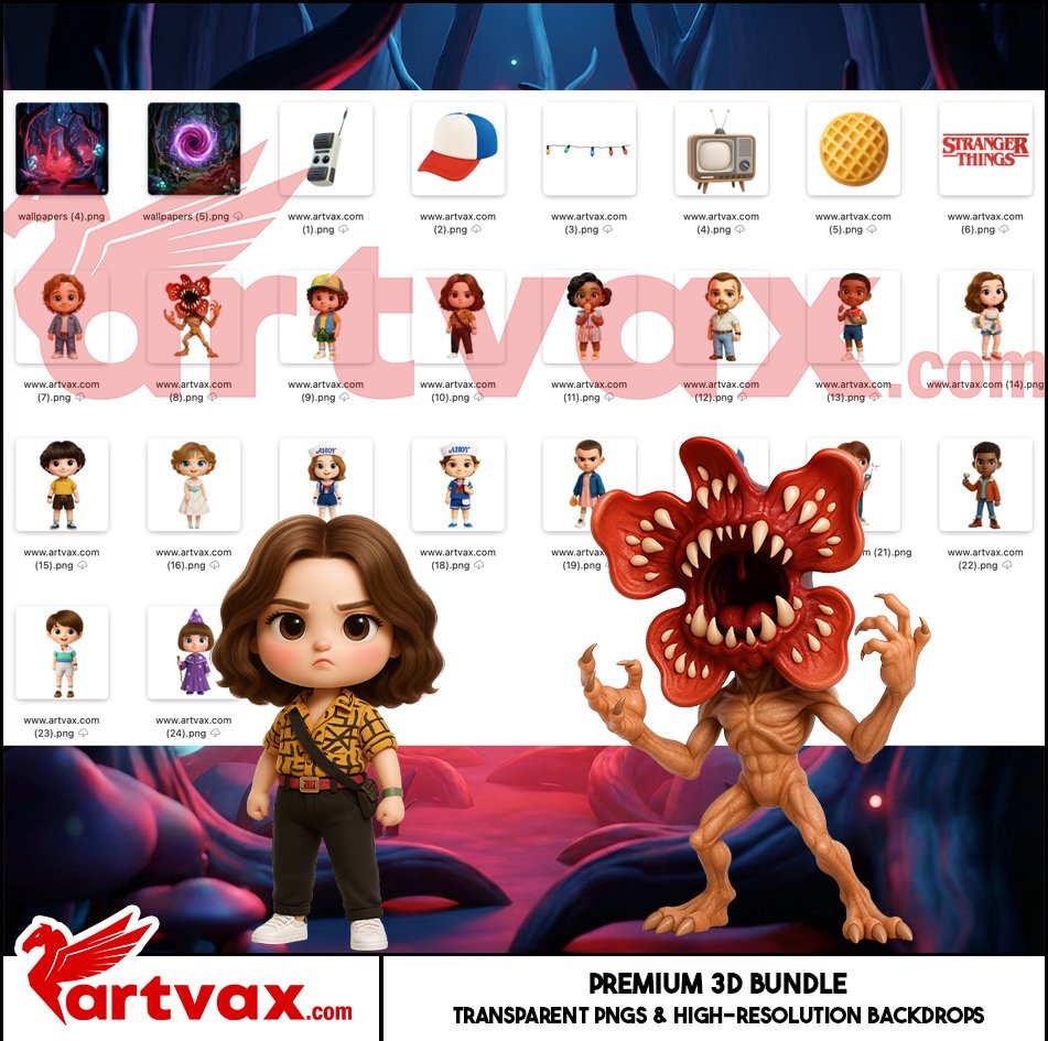 Stranger Things PNG Bundle | 3D Cute Characters Clipart | Eleven Dustin Lucas Max Steve PNG | Horror Fantasy Digital Download