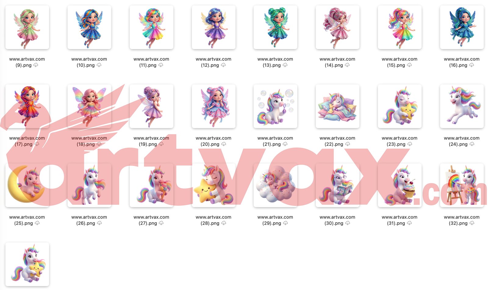 Step into a world of pure enchantment with our Magical Unicorn & Fairy PNG Bundle! ✨ Unleash your creativity and add a sprinkle of pastel magic to all your projects with these adorable, whimsical designs. This delightful collection features a stunning array of 3D rendered unicorns and charming fairies, each adorned with vibrant rainbow manes and wings, set against dreamy pastel backdrops. You’ll find playful unicorns reading, hugging stars, and peacefully sleeping, alongside graceful fairies in beautiful dresses. Perfect for creating unforgettable birthday invitations 🎂, enchanting nursery decor 🌸, unique sublimation designs, personalized t-shirts, adorable scrapbooking pages, and so much more! Each element is crafted with intricate detail and bursting with sweet, innocent charm, making them ideal for baby showers, children’s parties, or simply adding a touch of wonder to your digital creations. Get ready to bring your imagination to life with this versatile and heartwarming bundle! 💖🌟 Please Note:This is a digital product only — no physical item will be mailed.The PNG file is high-resolution and can be resized freely without loss of quality.🌟 Refund Policy:Refunds are only available in the following cases:• Incorrect file received• Missing file(s)• Poor-quality or corrupted file• Item not as described📩 Need Help?If you have any questions or issues, please don’t hesitate to contact us — we’re always happy to assist!